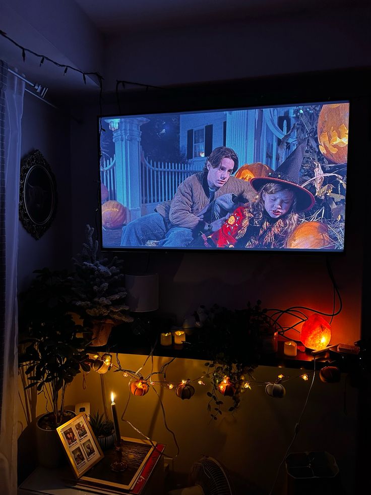 The built-in Hi-Fi speakers fill the room with immersive sound, creating that perfect cozy-night-in atmosphere.